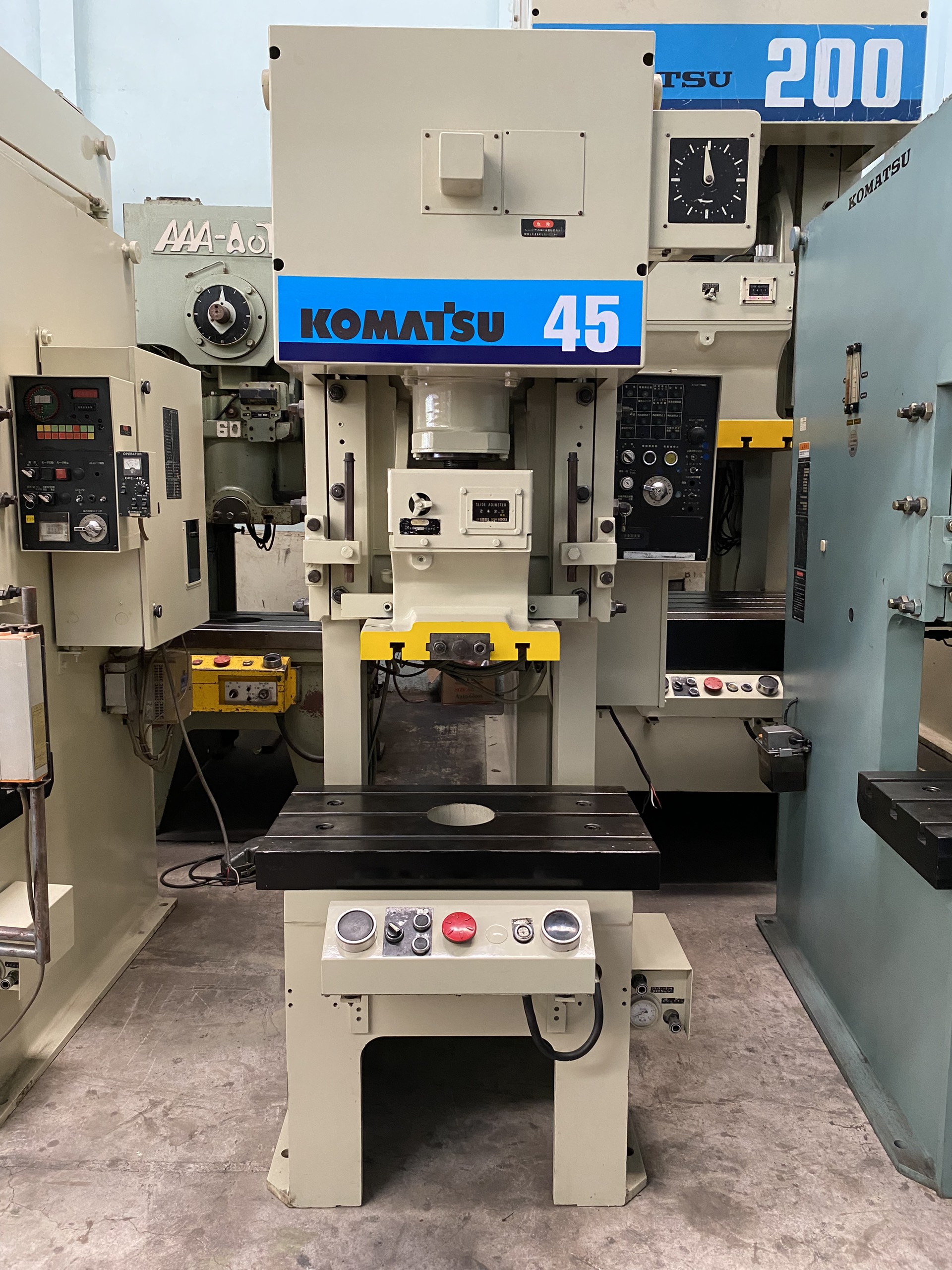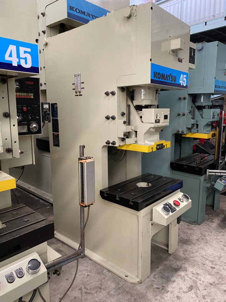 Trang chủ / Sản phẩm / Máy Dập KOMATSU 45 TẤN Máy Dập KOMATSU 45 TẤN Mã sản phẩm: KMS-45 Dòng máy: MÁY DẬP, Máy Dập 45T Xuất xứ: Nhật Bản Tính năng nổi bật: DÒNG MÁY OBS 45-3 NĂM SẢN XUẤT 1997/10 LỰC DẬP 45 TẤN TỐC ĐỘ 50-100 NHÁT/1 PHÚT HÀNH TRÌNH 100 MM ĐỘ HỞ KHUÔN 265 MM ĐIỀU CHỈNH ĐẦU DẬP 60 MM KÍCH THƯỚC ĐẦU DẬP 450 X 350 MM KÍCH THƯỚC BÀN DẬP 800 X 450 X 110 MM Tình trạng Còn hàng Yêu cầu báo giá Chính sách đổi trả Chính sách giao hàng Chính sách thanh toán Chính sách bảo hành MÔ TẢ CHI TIẾT YÊU CẦU BÁO GIÁ