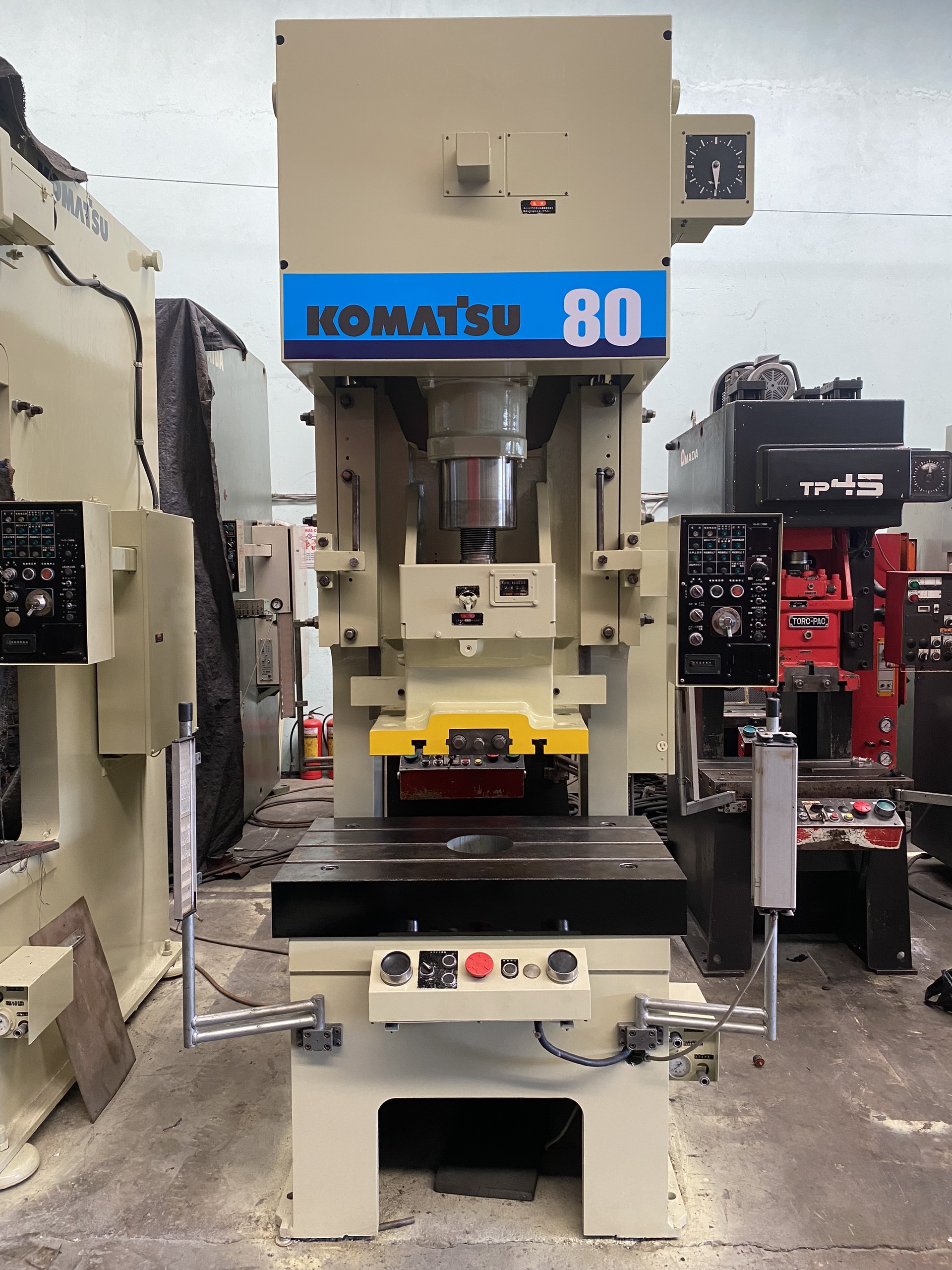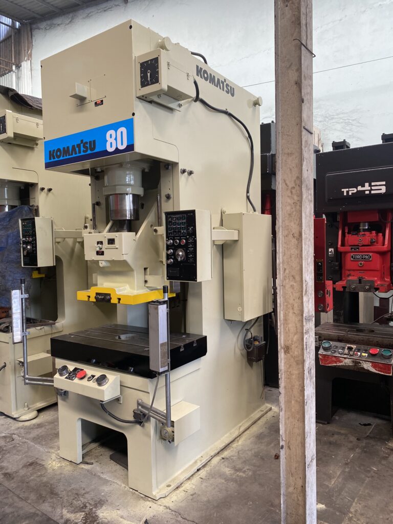 Trang chủ / Sản phẩm / MÁY DẬP KOMATSU 80 TẤN MÁY DẬP KOMATSU 80 TẤN Mã sản phẩm: KMS 80 Dòng máy: MÁY DẬP, Máy Dập 80T Xuất xứ: Nhật Bản Tính năng nổi bật: Máy Dập KOMATSU OBS 80 – Là thế hệ thứ 3 trong dòng OBS – Tính năng tự động bôi trơn toàn bộ hệ thống dập – Bơm chống quá tải sẽ tự dừng máy khi máy dập quá tải so với thông số máy – Điều chỉnh khoảng cách đầu dập lên xuống bằng nút nhấn. MÔ TẢ SẢN PHẨM KOMATSU OBS 80 DÒNG MÁY OBS 80-3 NĂM SẢN XUẤT LỰC DẬP 80 TẤN TỐC ĐỘ 37-75 NHÁT/1 PHÚT HÀNH TRÌNH 130 MM ĐỘ HỞ KHUÔN 350 MM ĐIỀU CHỈNH ĐẦU DẬP 80 MM KÍCH THƯỚC ĐẦU DẬP 550 X 450 MM KÍCH THƯỚC BÀN DẬP 1000 X 600 X 140 MM Tình trạng Còn hàng Yêu cầu báo giá Chính sách đổi trả Chính sách giao hàng Chính sách thanh toán Chính sách bảo hành MÔ TẢ CHI TIẾT YÊU CẦU BÁO GIÁ